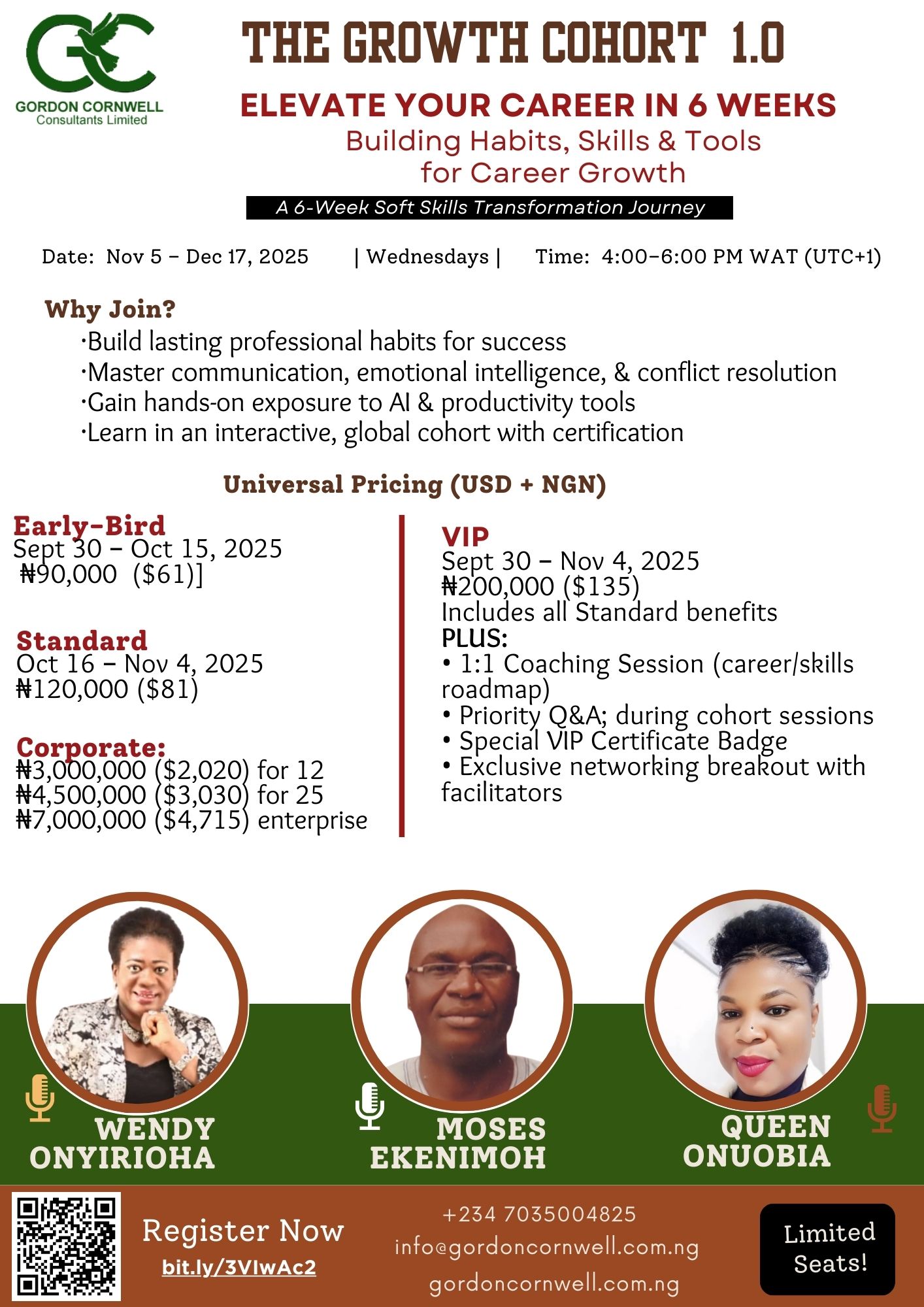 Please enable JavaScript in your browser to complete this form.Please enable JavaScript in your browser to complete this form.First Name *Middle NameLast Name *Your Phone Number *Your Email *Which programme do you want to attend? *SelectVirtual: September 10th, 2025 (₦18,500)EmailSubmit and Proceed to Make Payment NOTE: Evidence of payment is required for form to be processed.